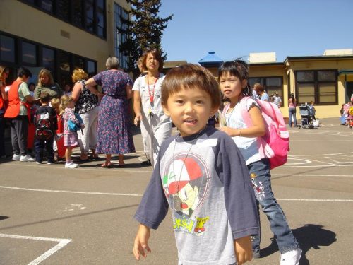 The parents got to see all the kids get settled and watch the teacher welcome the class and read them a story. I have a good feeling about the school, a nice mix of kids with two teachers to handle the twenty kids in Tyler’s class.