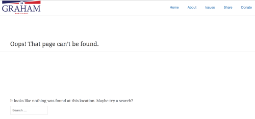 Bernie Sanders – bonus points for the down-home folksy message on the embedded video. “The good news is you’re on the right web site . . . the bad news is you’re on-the-wrong-page. Just scoot down . . . and you’ll find your way back home.”