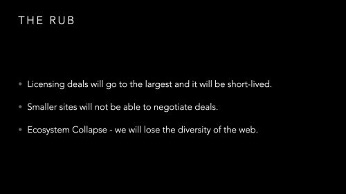 I look forward to staying engaged with the individuals and companies that were gathered for this workshop. AI summarization is rapidly tearing down a business model that has worked for decades. Unless there is an agreed upon business model that is accessible to all players including small publishers and long-tail AI startups, we may lose the diversity of opinions and perspectives that have given us the open web we currently enjoy.